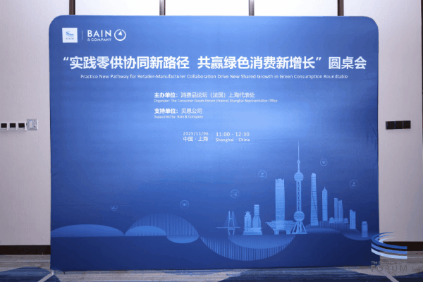 在第八届中国国际进口博览会期间,由全球最大的消费品行业组织——消费品论坛(法国)主办、贝恩公司协办的主题圆桌会议“实践零供协同新路径,共赢绿色消费新增长”于近日在上海虹桥成功举行。上海市商务委员会二级巡视员刘炜先生出席并致辞,上海市生态环境局、上海浦东世博管理局、上海市外商投资协会等相关政府部门领导亦莅临现场。