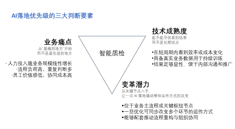 这一转型不以技术试点为目标,而是从业务最关键、最具约束性的环节切入。TCL光伏科技选择以AI“智能质检”为落地点,通过重构审核流程、设计人机协同机制,让AI逐步参与并承担业务判断职责。在此过程中,企业不仅需要解决技术落地问题,也需要应对组织调整、流程重塑以及责任边界变化带来的管理挑战。